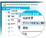 デバイスのモデル名を右クリックして、「デバイスを安全に接続解除する」をクリックして、携帯を安全にPCから接続解除します。